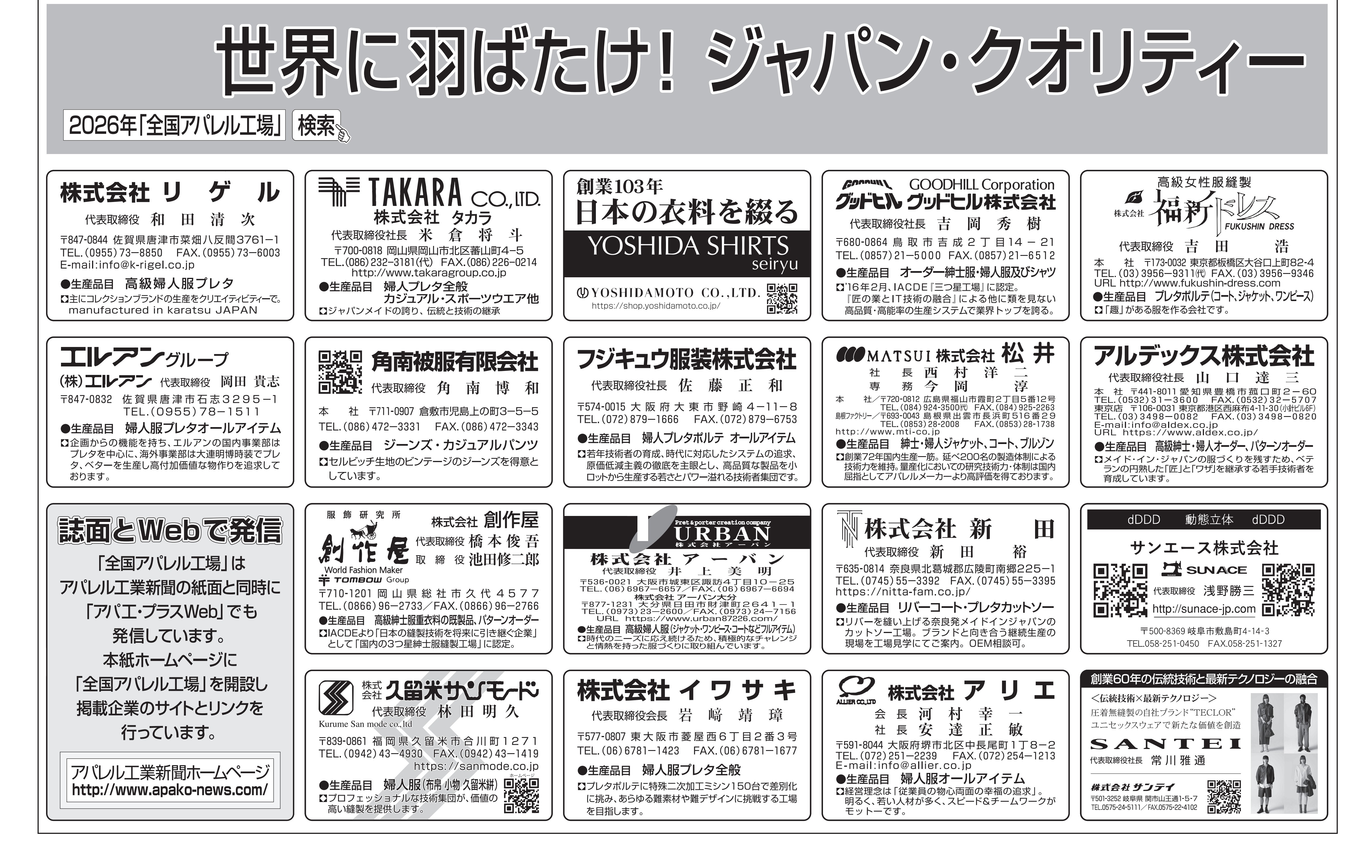 グローバル化、アウトソーシング、QRなど服作りの現場はめまぐるしく変化しています。 アパレル工業新聞は、パターン・縫製技術から生産現場までの"モノ作り”のすべての工程